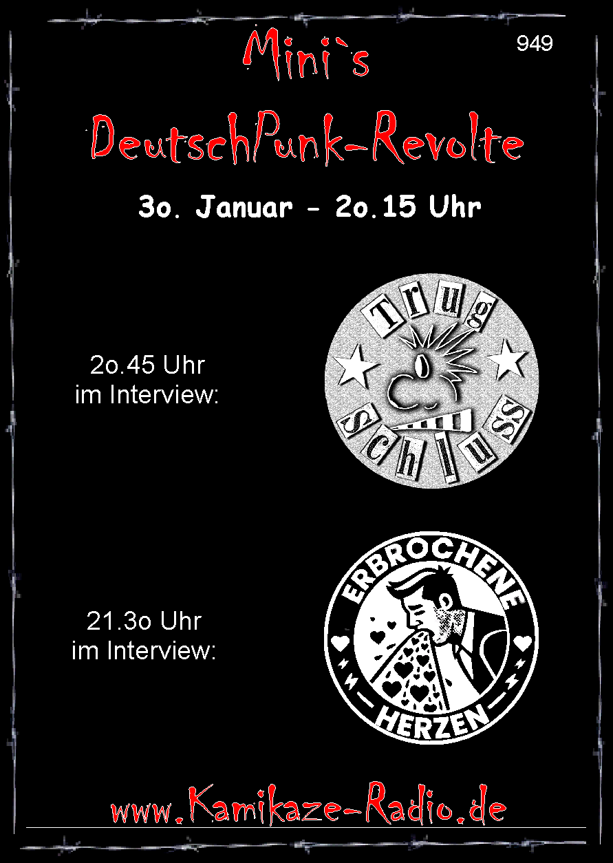 Mini vom Kamikaze-Radio spricht in seiner Sendung Mini`s DeutschPunk-Revolte mit Kay (Vol), Seppel (Git) und Kolin (Bass) von Erbrochene Herzen aus Flensburg