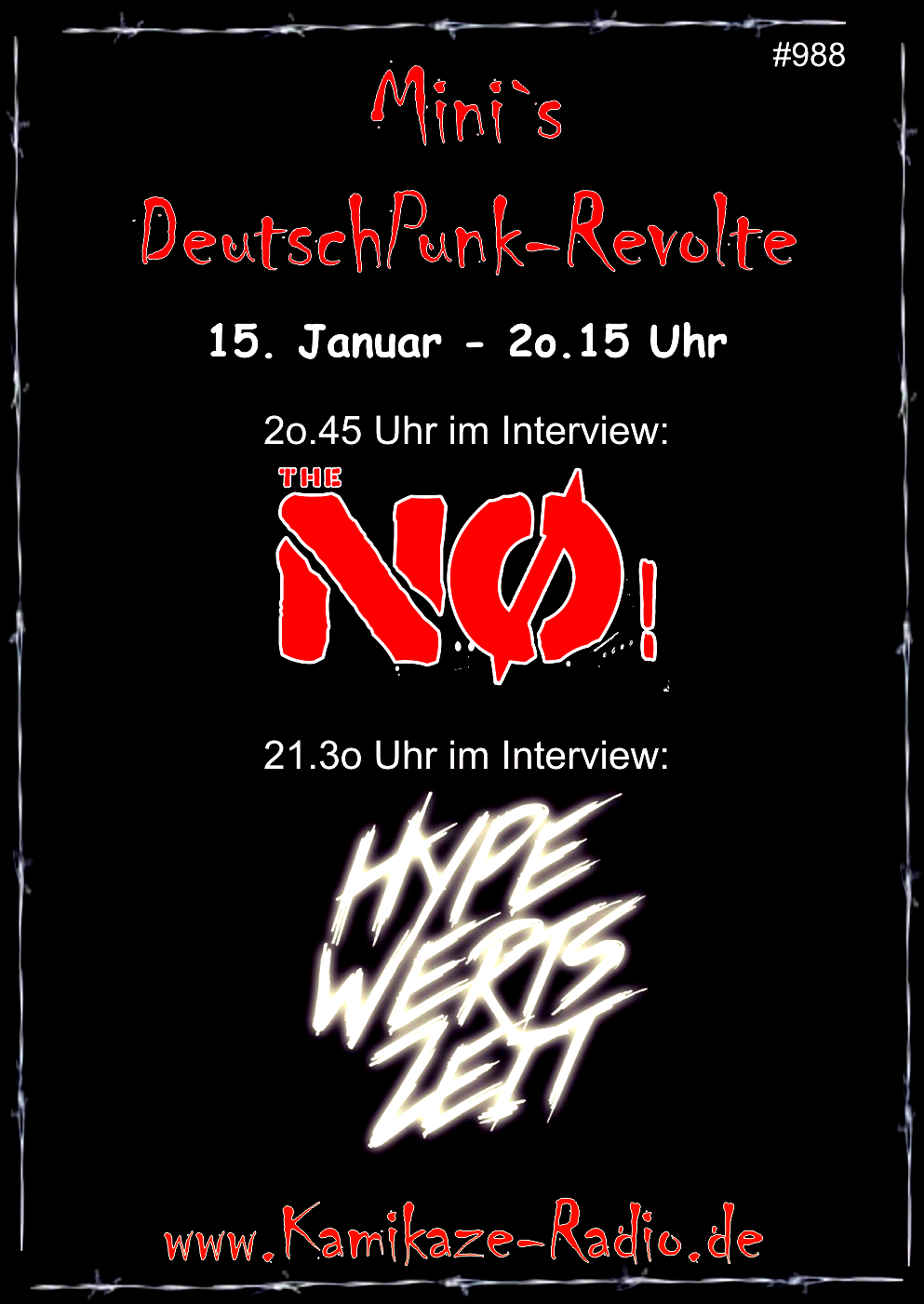 Mini vom Kamikaze-Radio spricht in seiner Sendung Mini`s DeutschPunk-Revolte mit Oli (Vol), Stephan (Git), PH (Bass) und Tim (Drums) von Hypewertszeit aus Halle/Saale