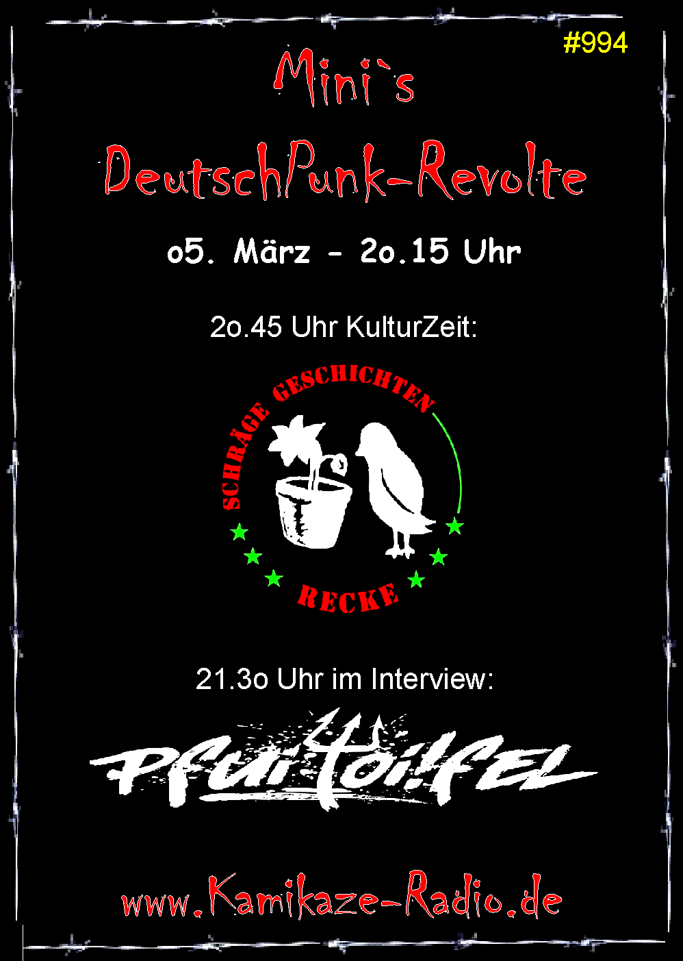 Mini vom Kamikaze-Radio spricht in seiner Sendung Mini`s DeutschPunk-Revolte mit cafehuesch (Vol), Tassi Taktlos (Bass), Robert (Git) und der Else (Drums) von PfuiToi!fel vom Niederrhein