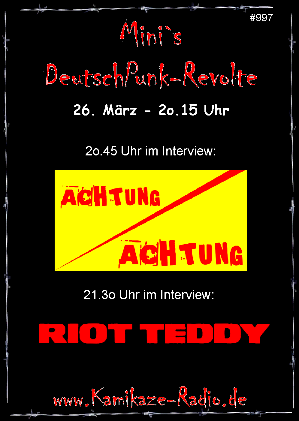 Mini vom Kamikaze-Radio spricht in seiner Sendung Mini`s DeutschPunk-Revolte mit Tim (Vol/Git), Mots (Bass/Vol) und Michel (Gast-Vol) von Achtung Achtung
