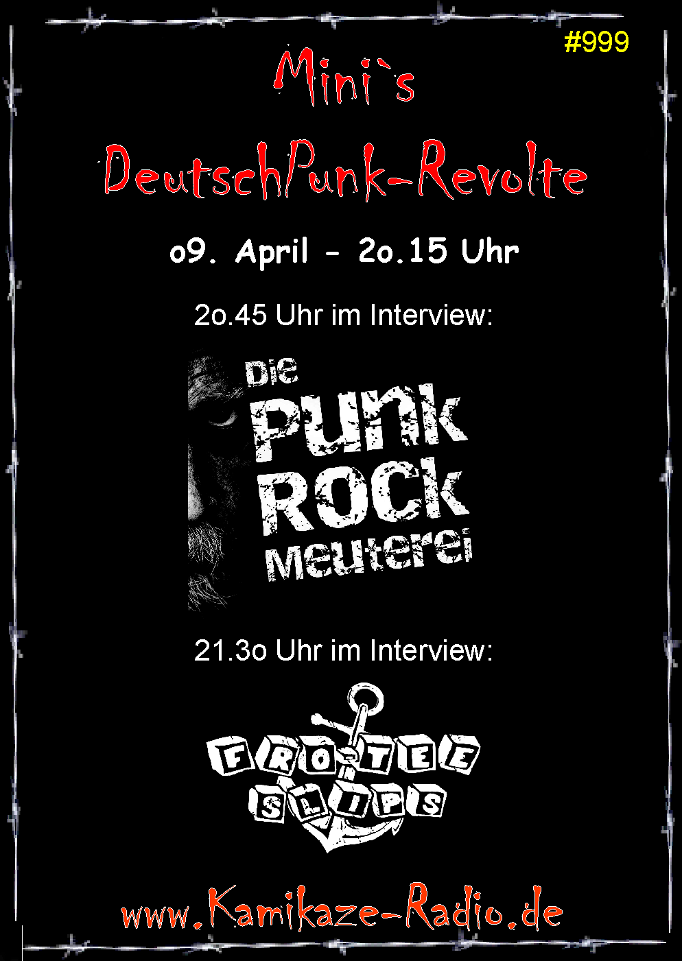 Mini vom Kamikaze-Radio spricht in seiner Sendung Mini`s DeutschPunk-Revolte mit Tim, Ovey und Ulf von der PunkRock-Meuterei aus Neustadt/Holstein