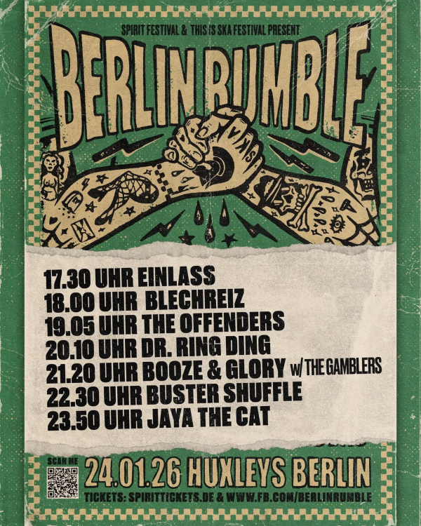 Am 24.01.2026 ist BERLIN RUMBLE im "Huxley´s Neue Welt" in Berlin-Neukölln am U-Bahnhof Hermannplatz mit den folgenden Bands: