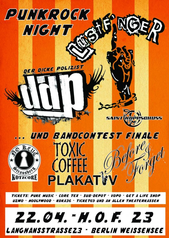 Am 22.04.2011 spielen in Berlin - Weissensee im H.O.F. 23 folgende Bands: