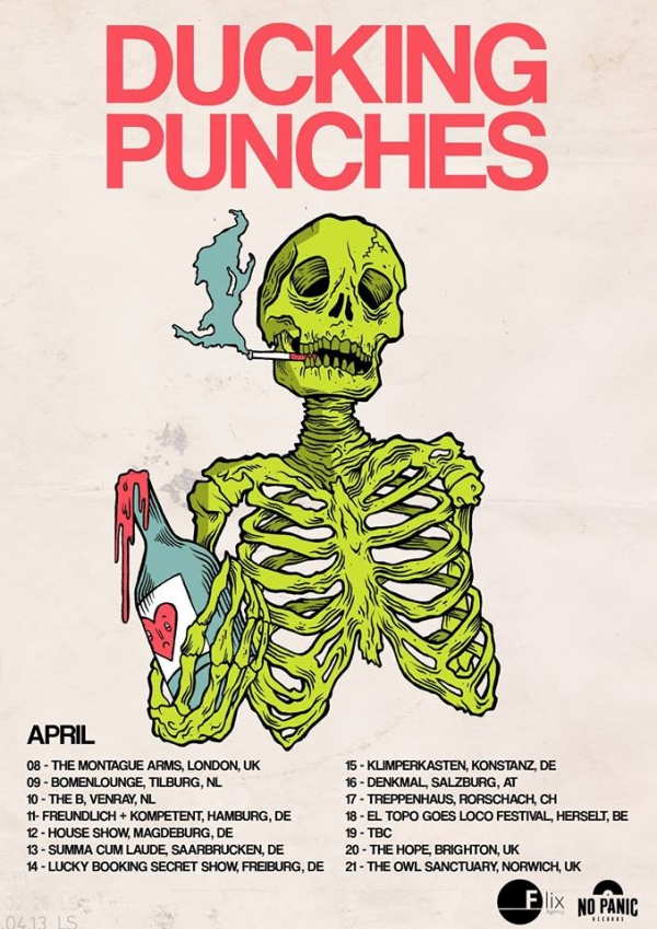 Die UK Band Ducking Punches war zuletzt hierzulande unter anderem mit Frank Turner auf Tour und kommt nun im April für Headlining Shows zurück nach Deutschland. Mit dabei sind die deutschen Senkrechtstarter von Redensart und der Singer / Songwriter Mark McCabe.