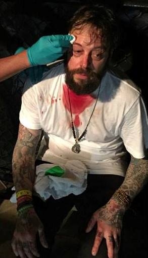 Dabei gab es Verletzte auf beiden Seiten und auch STREET DOGS Gitarrist Lenny Lashley (siehe Foto) blieb nicht davon verschont. Die Verletzungen waren allerdings oberflächlich, die Band konnte ihr Set zu Ende spielen und die Zivilcourage gegen rechts hat sich ausgezahlt.